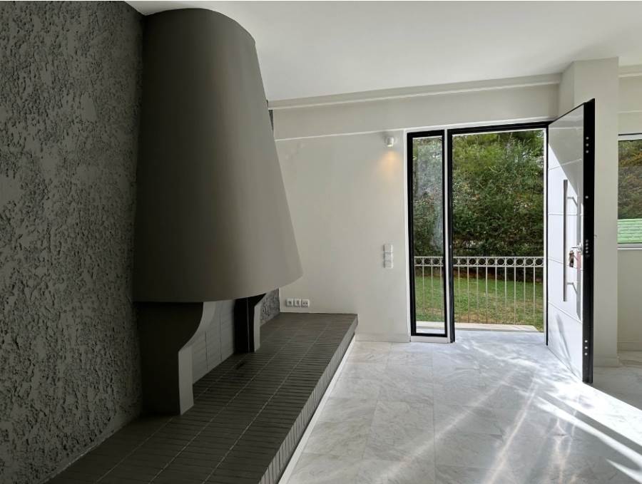 Kifissia, Kefalari, Apartment For Rent, 55 sq.m., Property Status: Refurbished, Floor: Ground floor, 1 Level(s), 1 Bedrooms 1 Kitchen(s), 1 Bathroom(s), Heating: Autonomous - Electricity, View: Mountain View, Energy Certificate: B, Floor type: Marble, Type of door frames: Aluminum, Features: Security door, Fireplace, Night stream, Electric Appliances, Double Glazed Windows, Window Screens, No shared expenses, Roadside, Bright, Back yard (Garden), Renovated, Price: 850€. North Project, email: northprojectcompany@gmail.com