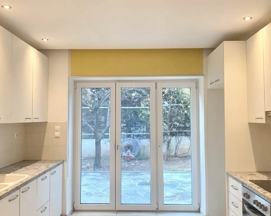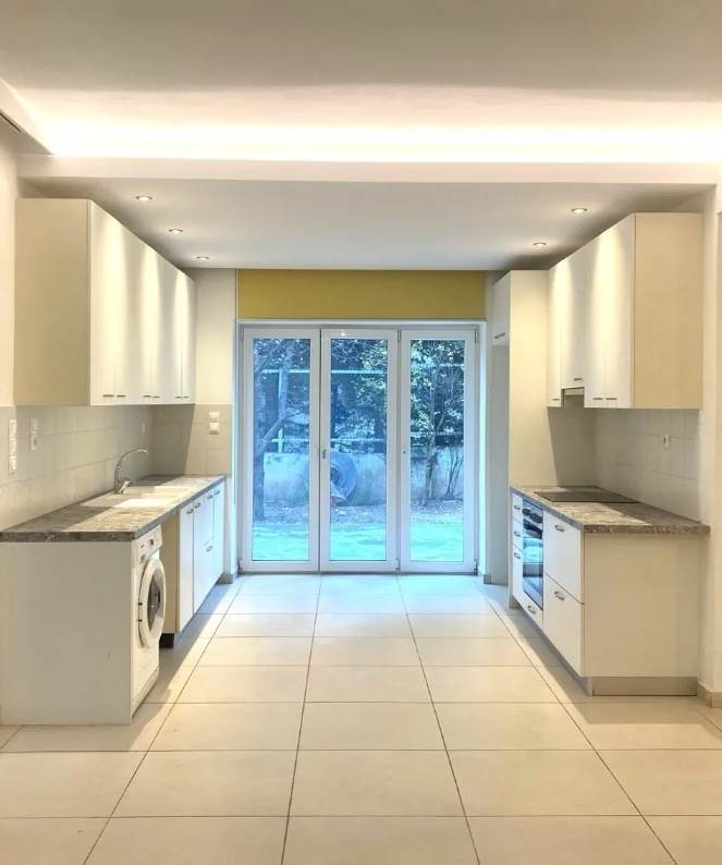 Melissia, Orio Kifisias, Apartment For Rent, 106 sq.m., Property Status: Refurbished, Floor: Ground floor, 1 Level(s), 2 Bedrooms (1 Master), 1 Kitchen(s), 2 Bathroom(s), Heating: Autonomous - Petrol, Building Year: 2009, Energy Certificate: B, Type of door frames: Aluminum, Features: Security alarm, Fireplace, Night stream, Electric Appliances, Triple Glazed Windows, Luxury, Roadside, Bright, Solar water system, Boiler, Back yard (Garden), Painted, Renovated, Price: 950€. North Project, email: northprojectcompany@gmail.com