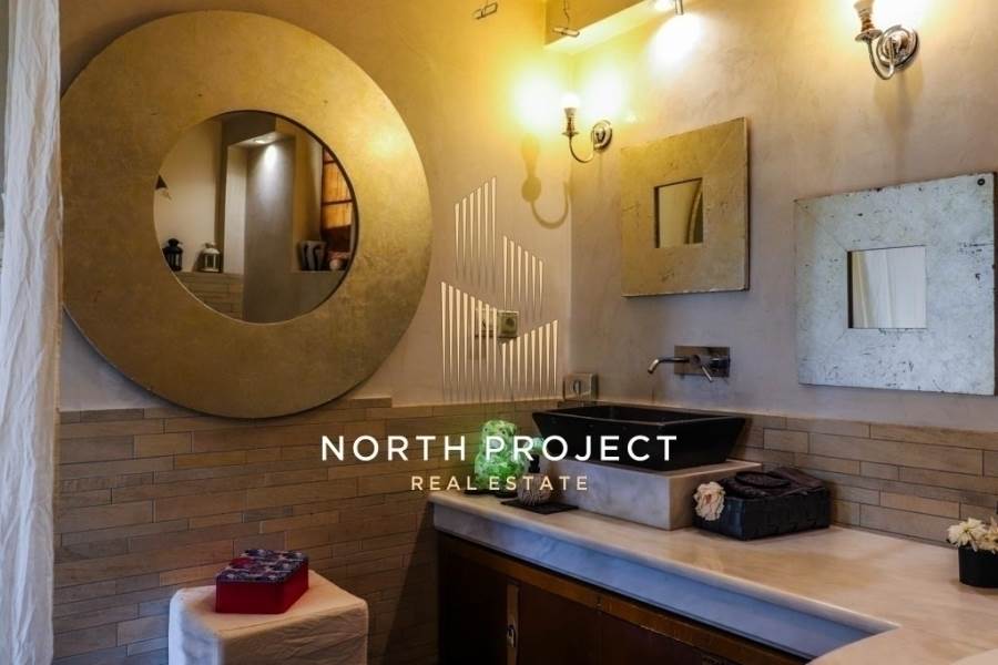 Nea Erithraia, Politia, Detached house For Sale, 285 sq.m., Property Status: Good, Floor: Ground floor, 4 Level(s), 2 Bedrooms (2 Master), 1 Kitchen(s), 2 Bathroom(s), 1 WC, Heating: Personal - Petrol, Building Year: 1990, Energy Certificate: C, Out of doors space: 35 τ.μ., 1 parking(s), Floor type: Wooden, Type of door frames: Aluminum, Features: Security door, Security alarm, CCTV, Storage room, Fireplace (2), Attic, Night stream, Electric Appliances, Playroom, Internal Staircase, Double Glazed Windows, Balconies, Pets Allowed, No shared expenses, Airy, Roadside, Bright, AirConditioning, Trees, Painted, Renovated, Price: 800.000€. North Project, email: northprojectcompany@gmail.com
